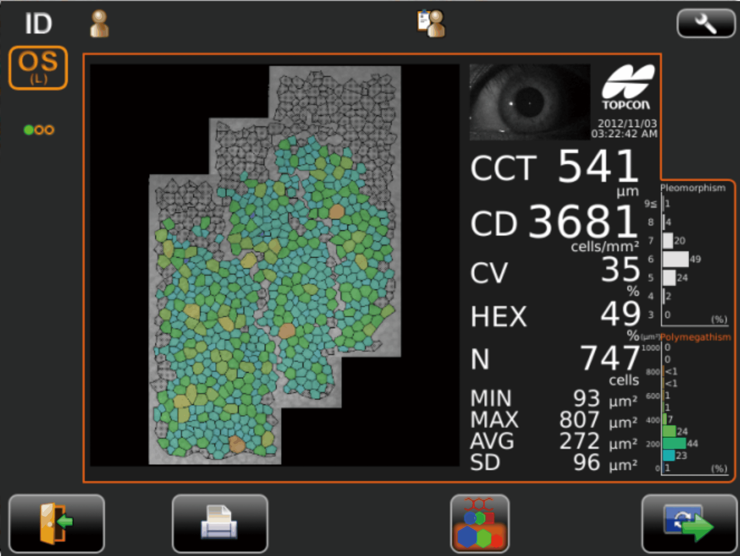 The SP-1P photographs and displays analysed data by simply touching the image of the pupil on the control panel.